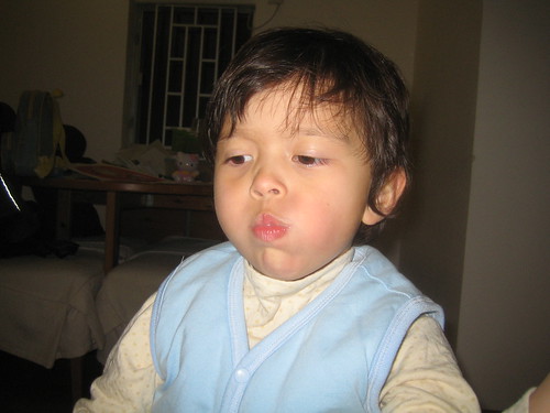 That evening Grace told me the full story she'd got from Ching-ching - Emma had been trying to 'walk' past Sarah, holding on to the edge of a shelf. Sarah had objected, bumping her back with her bum - so Emma registered her disapproval by biting her. Grace then admitted that she also had a reputation as a biter when she was little. Can Emma claim she is a victim of her genes?